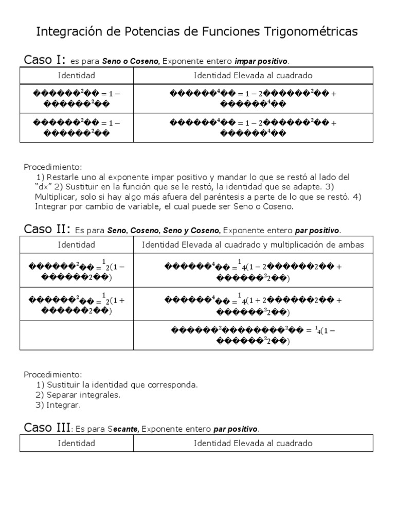 Caso I: es para Seno o Coseno, Exponente entero impar positivo.