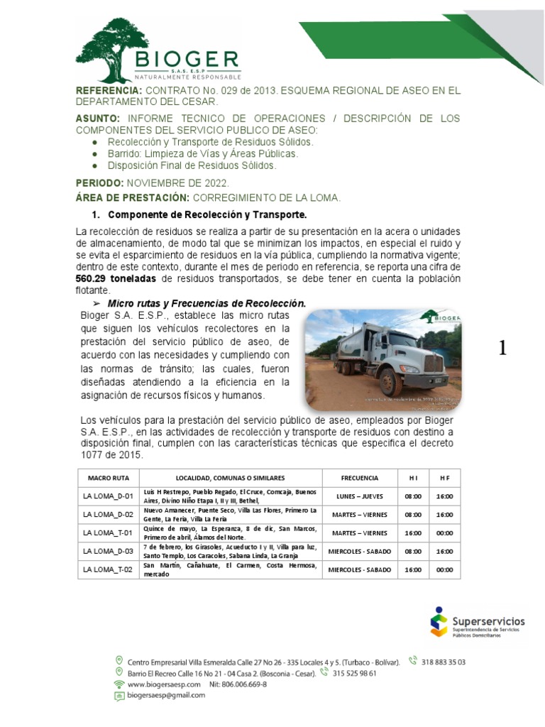 El Parque ambiental de Becerril, Es operado por Bioger S.A. El R S R, Don Bosco, Es operado por Bioger S.A. E.S.P.