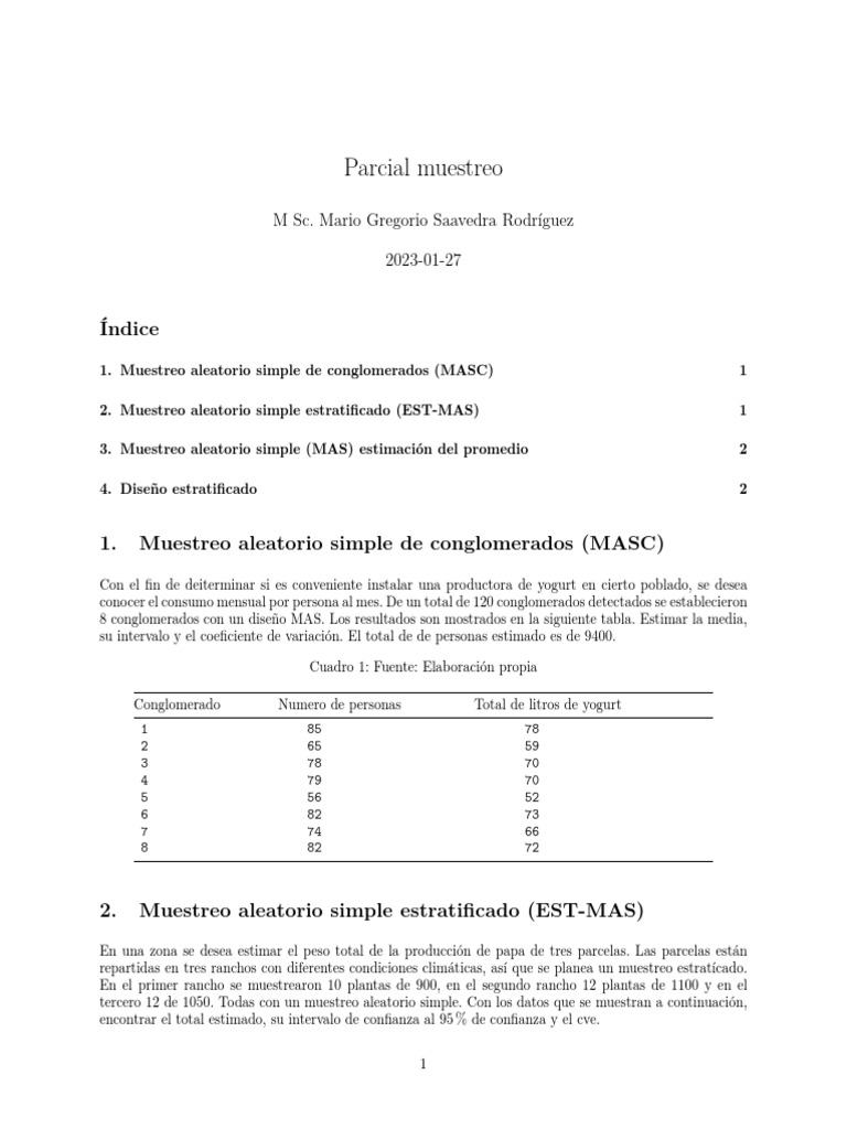 1. Muestreo aleatorio simple de conglomerados (MASC) 1