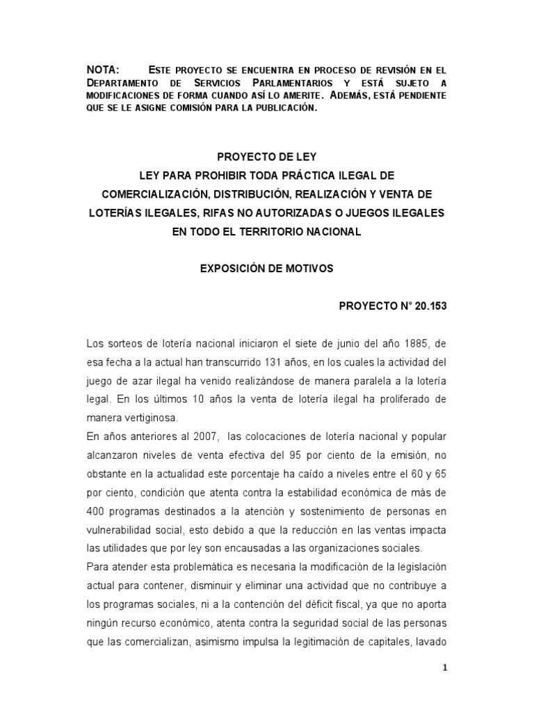 Dentro de los aspectos importantes que se mencionan en la “Ley de Loterías