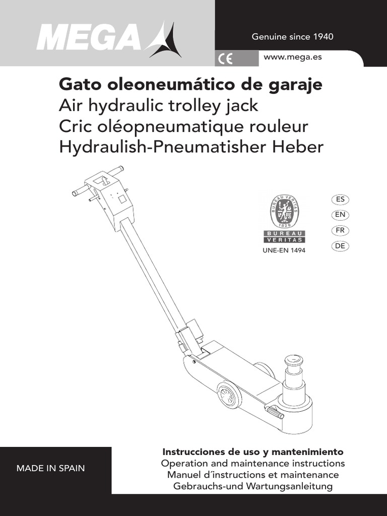 Este gato ha sido diseñado para su utilización como elevador de vehículos. Cualquier otra aplicación, fuera de los términos establecidos