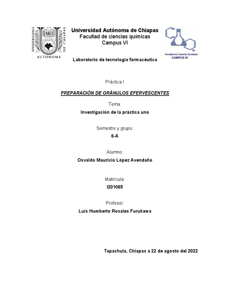 Realizar una investigación de la preparación de los gránulos efervescentes: