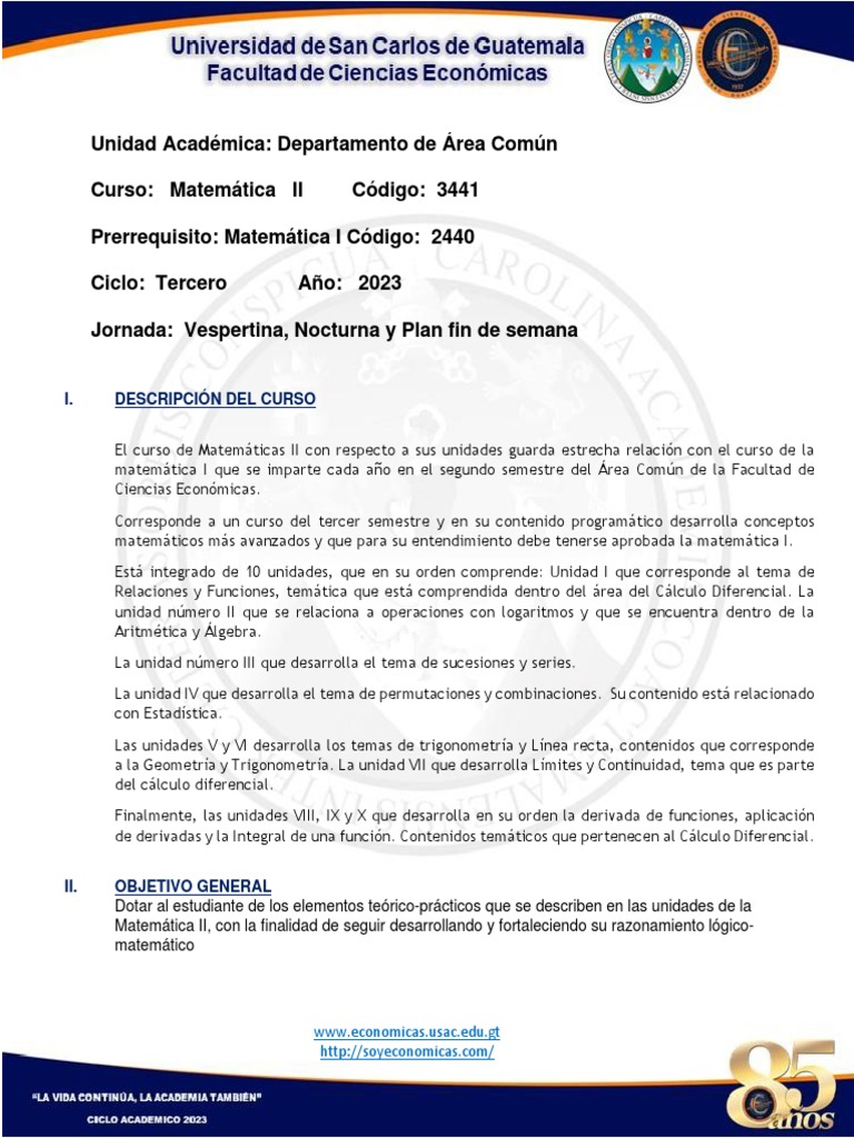 Curso: Matemática II Código: 3441