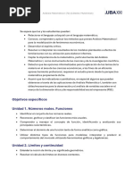 a la Geometría y Trigonometría. La unidad VII que desarrolla Límites y Continuidad, tema que es parte