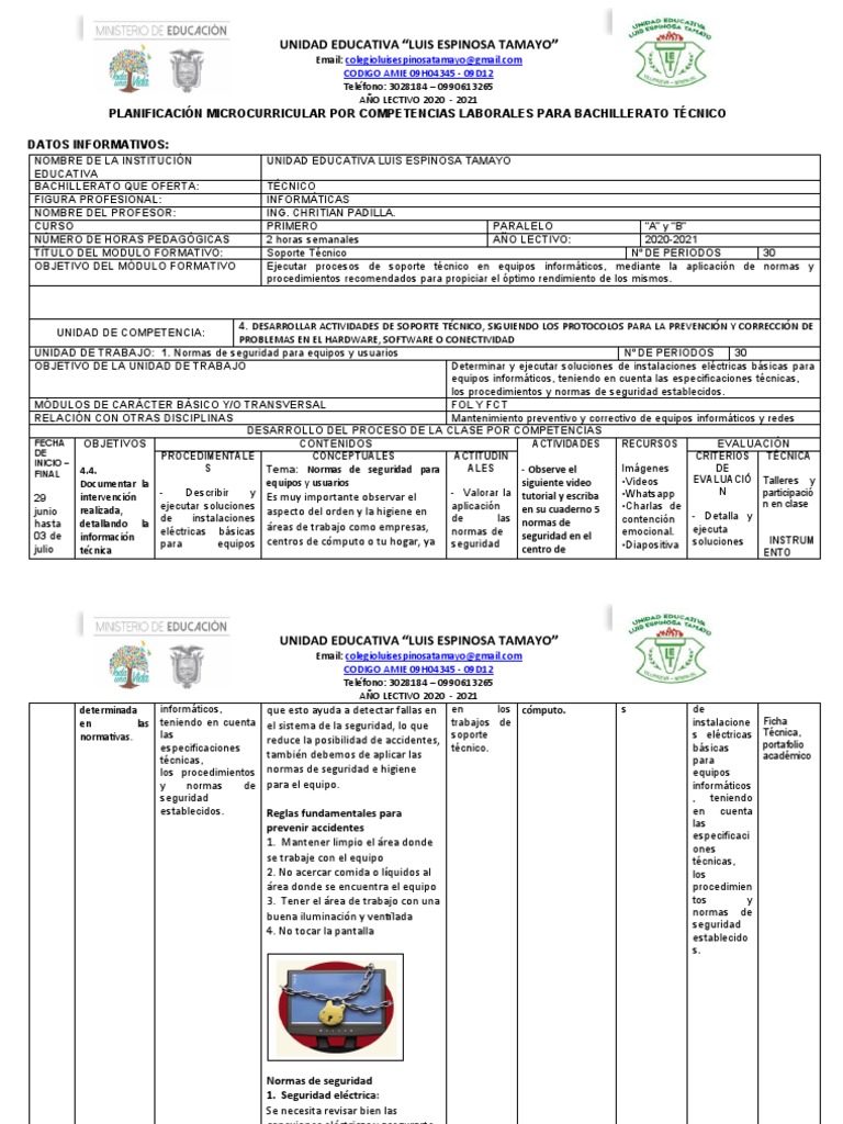 PLANIFICACIÓN MICROCURRICULAR POR COMPETENCIAS LABORALES PARA BACHILLERATO TÉCNICO