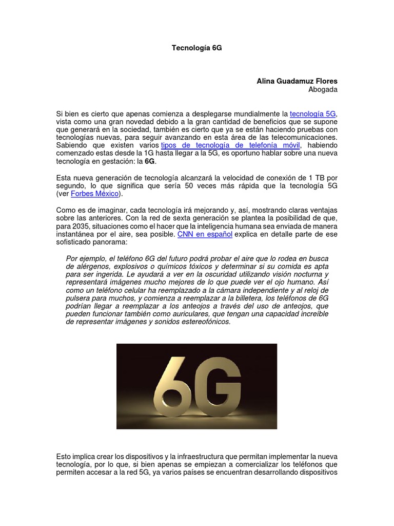 tecnología móvil 6G, como por la Red 2030, que, a diferencia de las tecnologías de