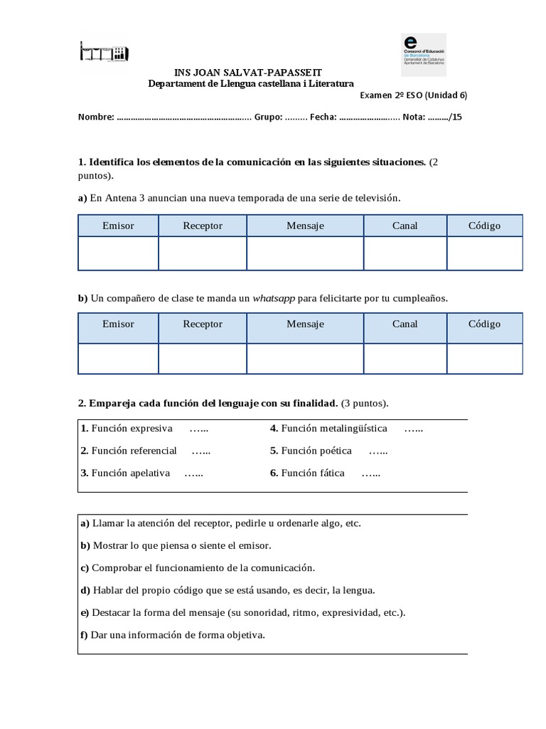 3. Indica qué función del lenguaje predomina en cada uno de los siguientes