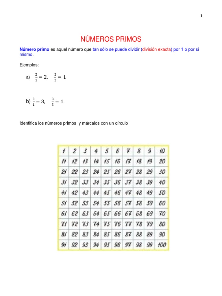 Número primo es aquel número que tan sólo se puede dividir (división exacta) por 1 o por si