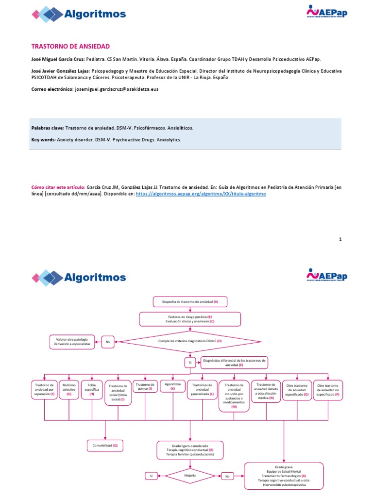 Cómo citar este artículo: García Cruz JM, González Lajas JJ. Trastorno de ansiedad. En: Guía de Algoritmos en Pediatría de Atención Primaria [en