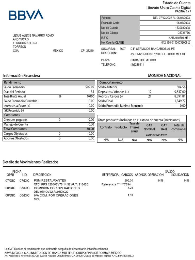 Saldo Promedio Gravable 0.00 Saldo Final 1,549.77