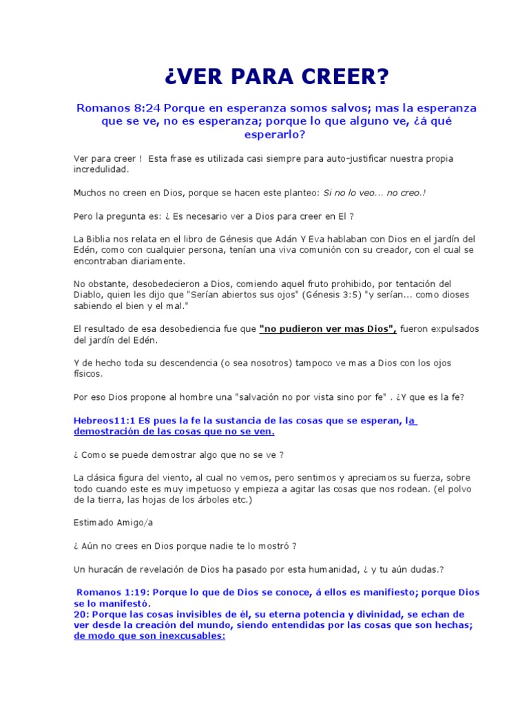 Pero la pregunta es: ¿ Es necesario ver a Dios para creer en El ?