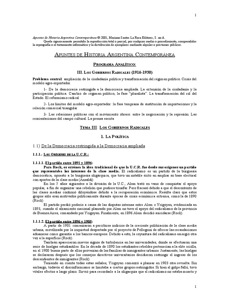 Apuntes de Historia Argentina Contemporánea © 2001, Mariano Santos La Rosa Editores, S. no A.