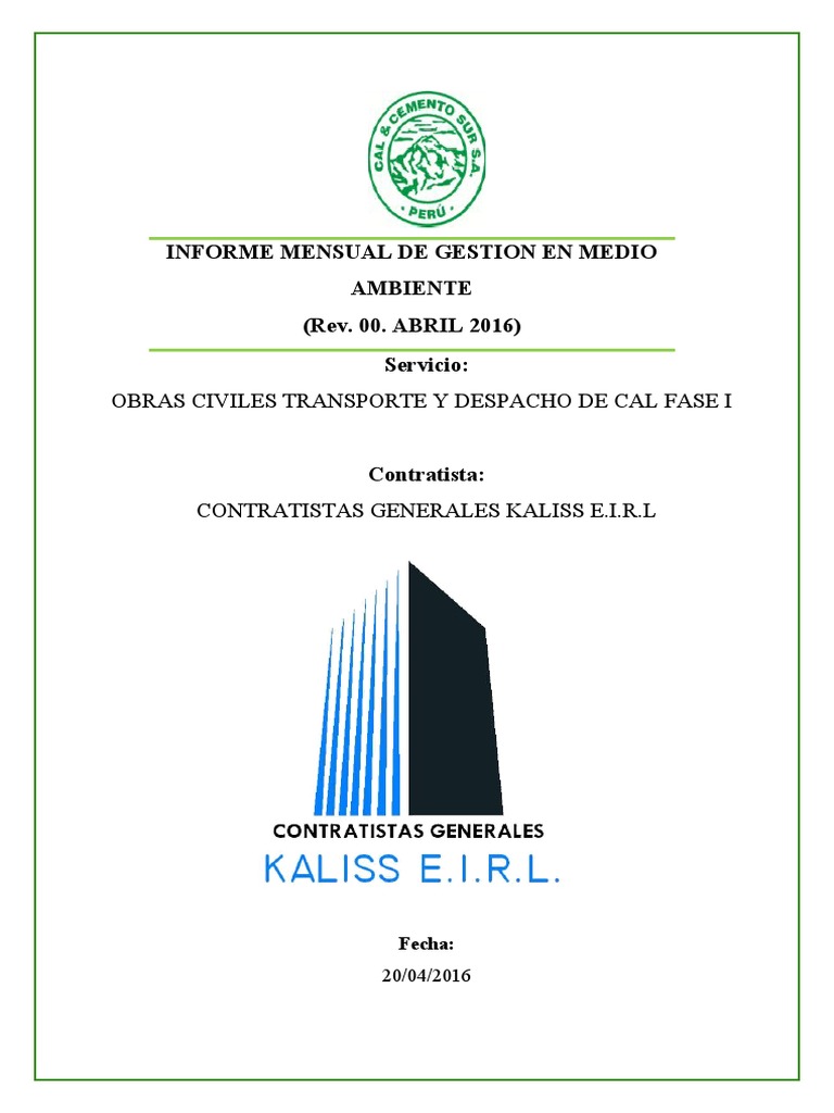 el Área de Medio Ambiente de la empresa KALISS E.I.R.L. Durante la ejecución