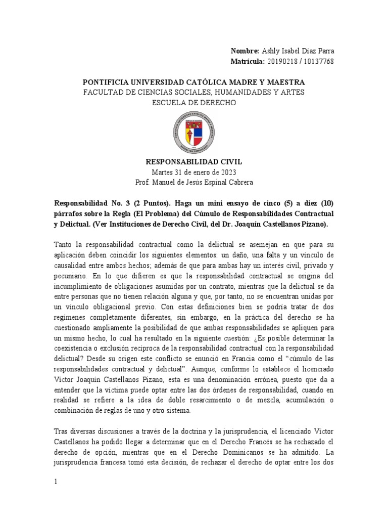 responsabilidades contractual y delictual”. Aunque, conforme lo establece el licenciado