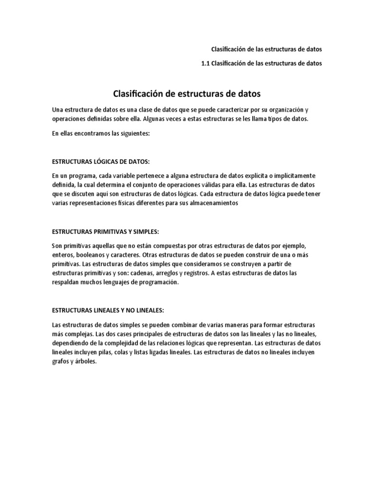 1.1 Clasificación de las estructuras de datos