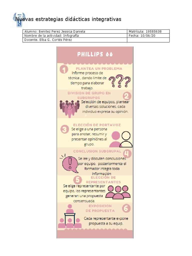 La estudiante Jessica Daniela Benitez Perez presentó una infografía como nueva estrategia didáctica integrativa para la clase de la profesora Elba G. Cortés Pérez el 10 de junio de 2020 con matrícula 19585638.