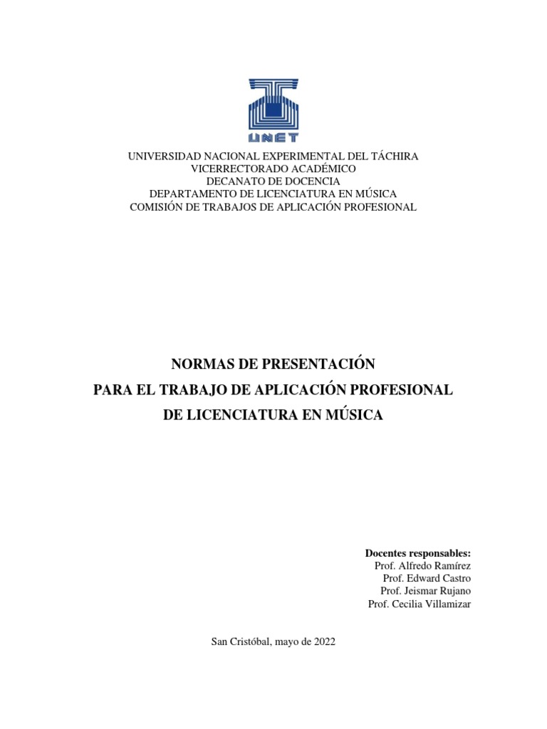 Licenciatura en Música de la Universidad Nacional Experimental del Táchira (UNET), que