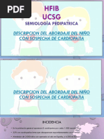 signos encontramos hipodesarrollo físico, cardiomegalia, soplo de Gibson con frémito en el
