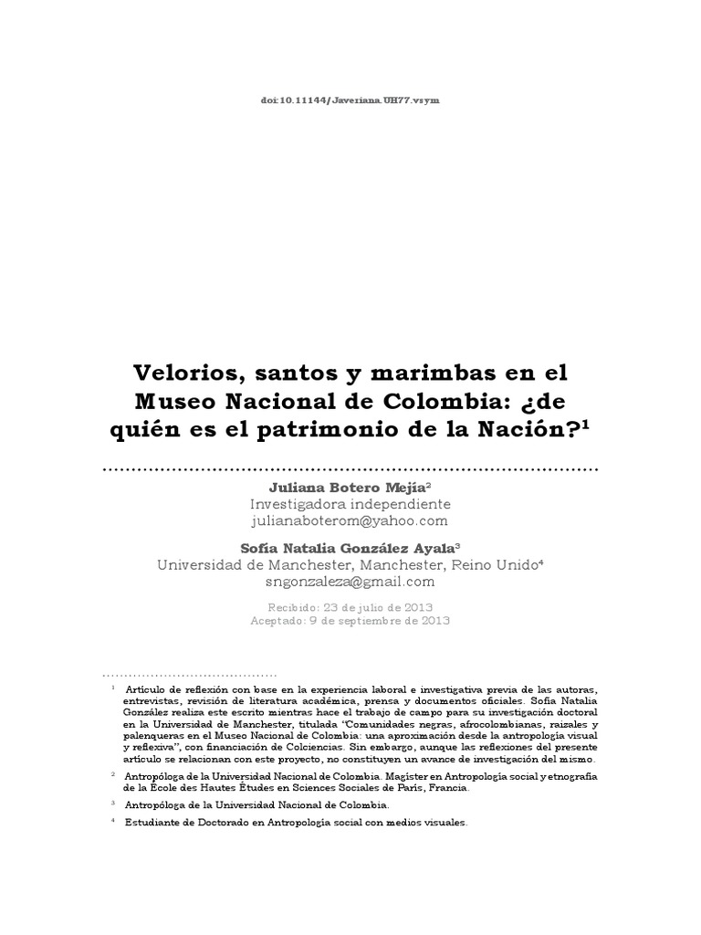 samiento. Patrimonio de Colombia para la humanidad (2012-2013) dos