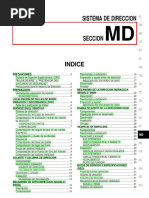 PRECAUCIONES Y PREPARACION........................ 2 Precauciones ......................................................... 2 Preparacin............................................................ 2 PREPARACION ......................................................... 3 INVESTIGACION DE RUIDOS, VIBRACIONES Y BRUSQUEDAD (NVH) ........................................... 4 Cuadro para la investigacin de NVH ................... 4 INSPECCION EN EL VEHICULO ............................. 5 Comprobacin del juego del volante ..................... 5 Comprobacin de la posicin neutra del volante.................................................................... 5 Angulo de giro de las ruedas delanteras .............. 5 Comprobacin del movimiento de la caja de la direccin................................................................. 5 Comprobacin y ajuste de las correas del motor ...................................................................... 6 Comprobacin del nivel de fluido .......................... 6 Comprobacin de prdidas de fluido..................... 6 Purga del circuito hidrulico .................................. 6 Comprobacin de la fuerza de giro del volante .... 7 Comprobacin del circuito hidrulico..................... 8 VOLANTE Y COLUMNA DE DIRECCION................ 9 Desmontaje y montaje ......................................... 10 Desarmado y armado .......................................... 11 Inspeccin ............................................................ 12 MECANISMO Y VARILLAJE DE LA SERVODIRECCION................................................. 14 Desmontaje y montaje ......................................... 14 Desarmado........................................................... 17 Inspeccin ............................................................ 17 Armado................................................................. 19 SR20DE BOMBA DE ACEITE DE LA SERVODIRECCION................................................. 20 CD20T BOMBA DE ACEITE DE LA SERVODIRECCION................................................. 21 QG16, 18DE BOMBA DE ACEITE DE LA SERVODIRECCION................................................. 22 SR20DE, CD20T, QG16DE, QG18DE DATOS DE SERVICIO Y ESPECIFICACIONES (SDS)........................................................................ 23 Especificaciones generales ................................. 23 Inspeccin y ajuste .............................................. 23