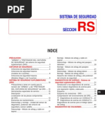 El Airbag y el Pretensor del cinturn de seguridad del Sistema de seguridad suplementario, usados junto con los cinturones de seguridad, ayudan a reducir el riesgo o la gravedad de lesiones del conductor y pasajero delantero en un choque frontal. El Sistema de seguridad suplementario consiste en mdulos de airbag (ubicados en el centro del volante y en el tablero de instrumentos en el lado del pasajero), pretensores de cinturn de seguridad, una unidad del sensor de diagnstico, un testigo ptico, una instalacin y un cable en espiral. Si el vehculo est equipado con un airbag lateral del Sistema de seguridad suplementario, dicho airbag, usado junto con el cinturn de seguridad, ayuda a reducir el riesgo o la gravedad de lesiones del conductor y del pasajero delantero en una colisin lateral. El airbag lateral consiste en mdulos de airbag (ubicados en el lateral exterior de los asientos delanteros), un sensor satlite, una unidad del sensor de diagnstico (uno de los componentes de los airbags para una colisin frontal), una instalacin y un testigo ptico (uno de los componentes de los airbags para una colisin frontal). ADVERTENCIA: q Para evitar que el SRS quede fuera de servicio, lo cual aumentara el riesgo de lesiones graves o mortales (en caso de una colisin por la cual se inflara el airbag), todas las operaciones de mantenimiento deben ser realizadas por un concesionario autorizado de NISSAN. q Un mantenimiento inadecuado, incluidos el desmontaje y el montaje incorrectos del SRS, puede producir lesiones personales debido a la activacin involuntaria del sistema. q No se debe usar ningn equipo elctrico de prueba en ningn circuito relacionado con el SRS a menos que se indique en este Manual de Taller. Las instalaciones del SRS estn cubiertas con aislante amarillo (justo antes de los conectores de la instalacin o en toda la instalacin), para identificarlas fcilmente.