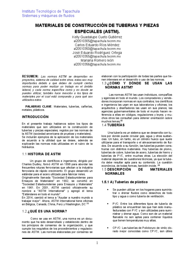 la ASTM (sociedad americana de pruebas y materiales). Una tubería es un sistema que se desarrolla con tu-