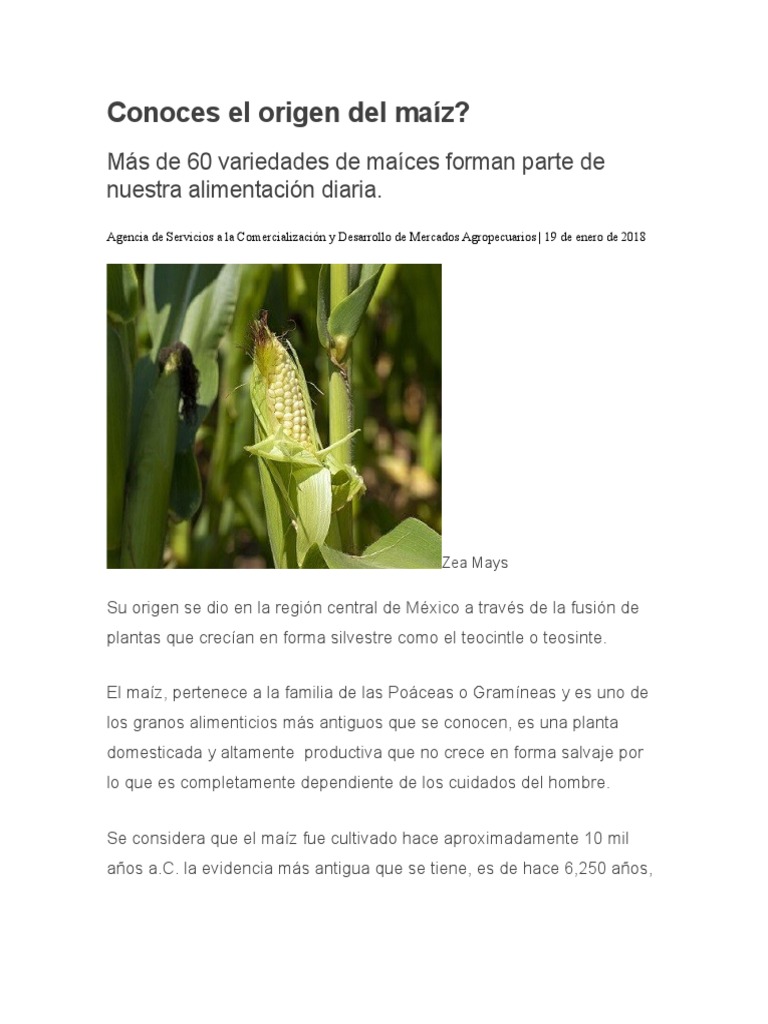 Conoces el origen del maíz?