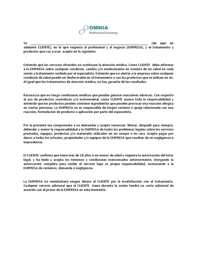 al uso de productos cosméticos y/o instrumental, como CLIENTE asumo toda la responsabilidad y