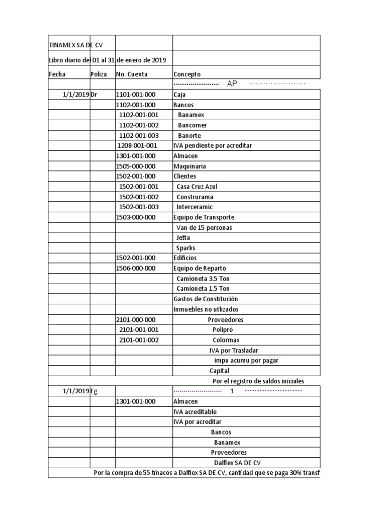 Libro Diario Enero 2019 - Tinamex SA