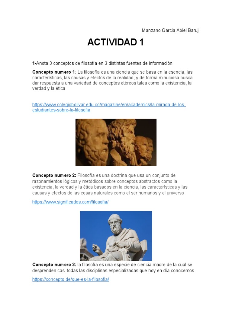 1-Anota 3 conceptos de filosofía en 3 distintas fuentes de información