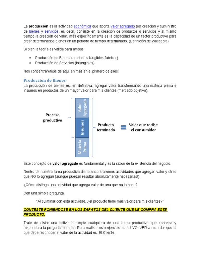 Dentro de nuestra tarea productiva diaria encontraremos actividades que agregan valor y otras