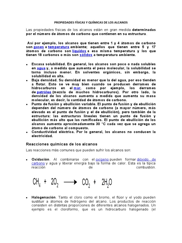 PROPIEDADES FÍSICAS Y QUÍMICAS DE LOS ALCANOS