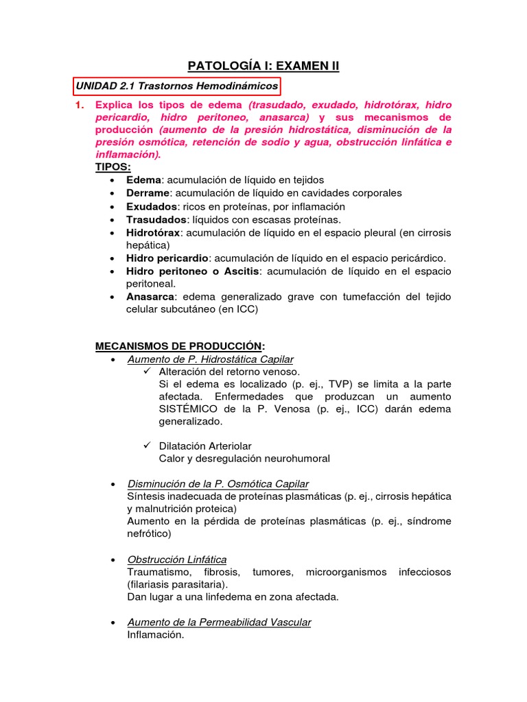 1. Explica los tipos de edema (trasudado, exudado, hidrotórax, hidro