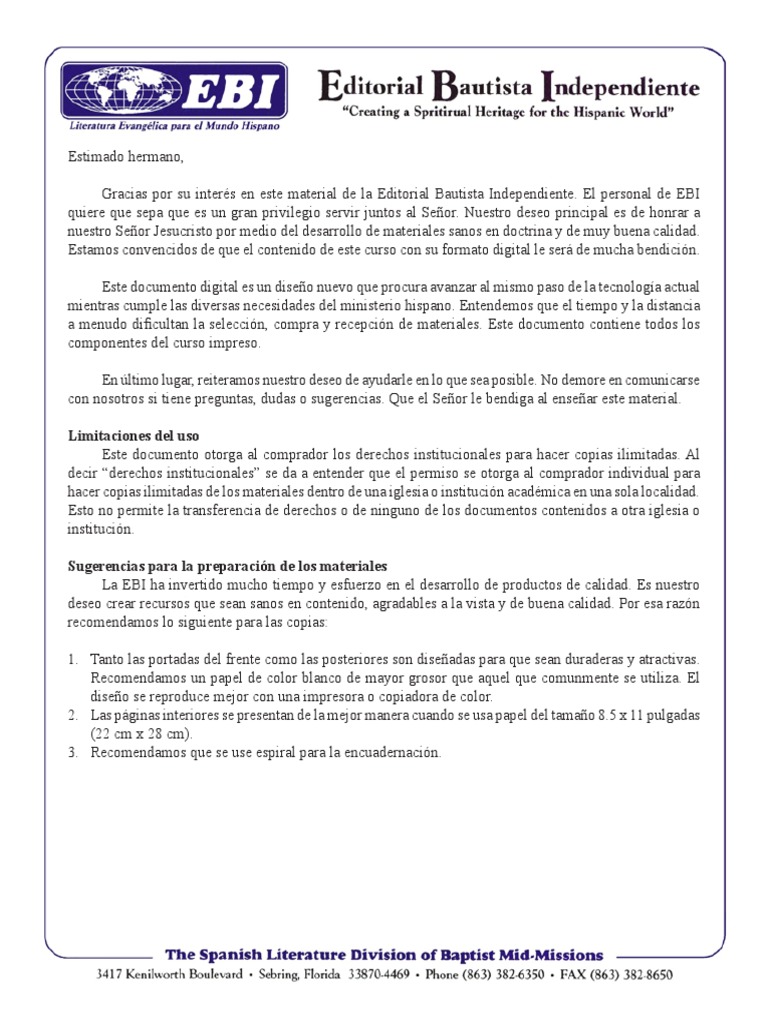 Gracias por su interés en este material de la Editorial Bautista Independiente. El personal de EBI