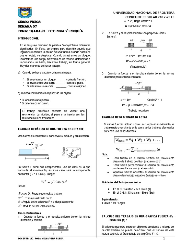 desplazamiento es fácil demostrar que el trabajo también se (P.E)