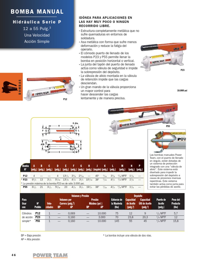 * La presión máxima de la bomba P23 es de sólo 3.000 psi. también actúa como junta para