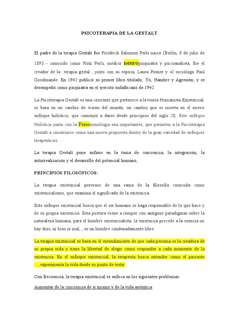 El padre de la terapia Gestalt fue Friedrich Salomon Perls nacio (Berlín, 8 de julio de