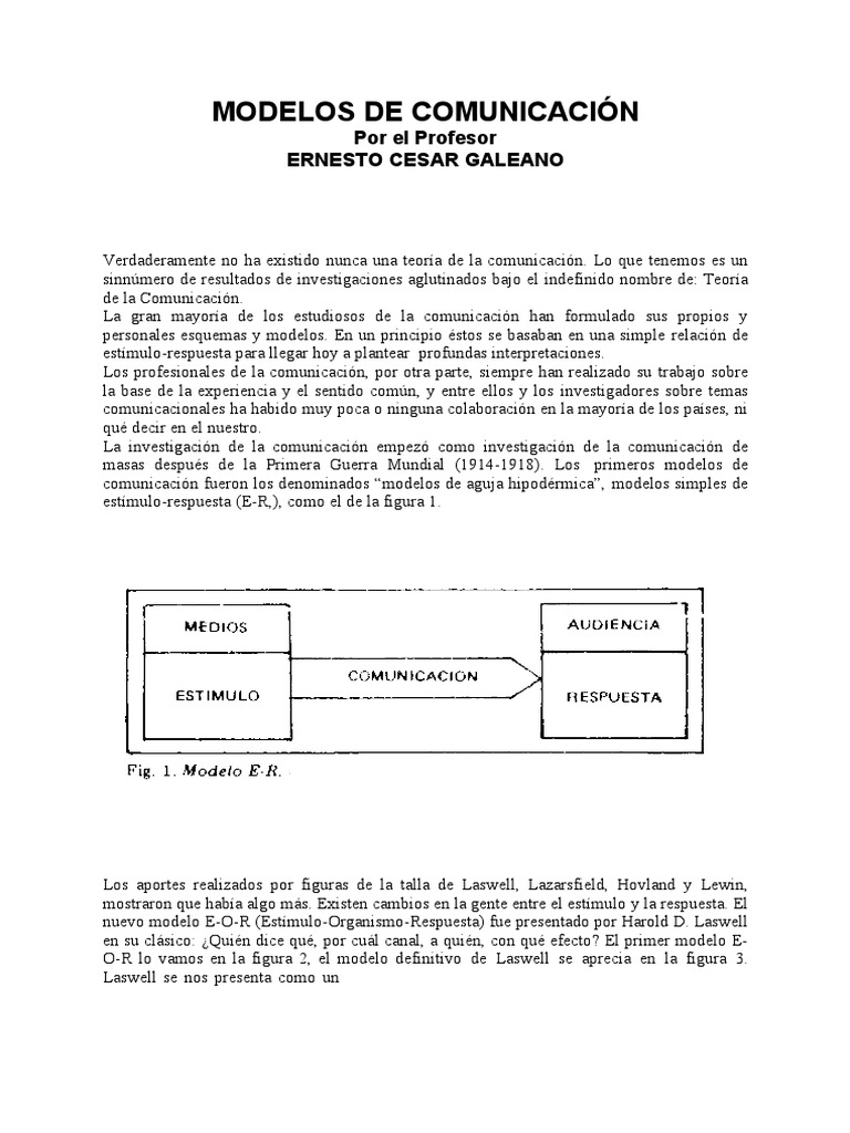 nuevo modelo E-O-R (Estímulo-Organismo-Respuesta) fue presentado por Harold D. Laswell