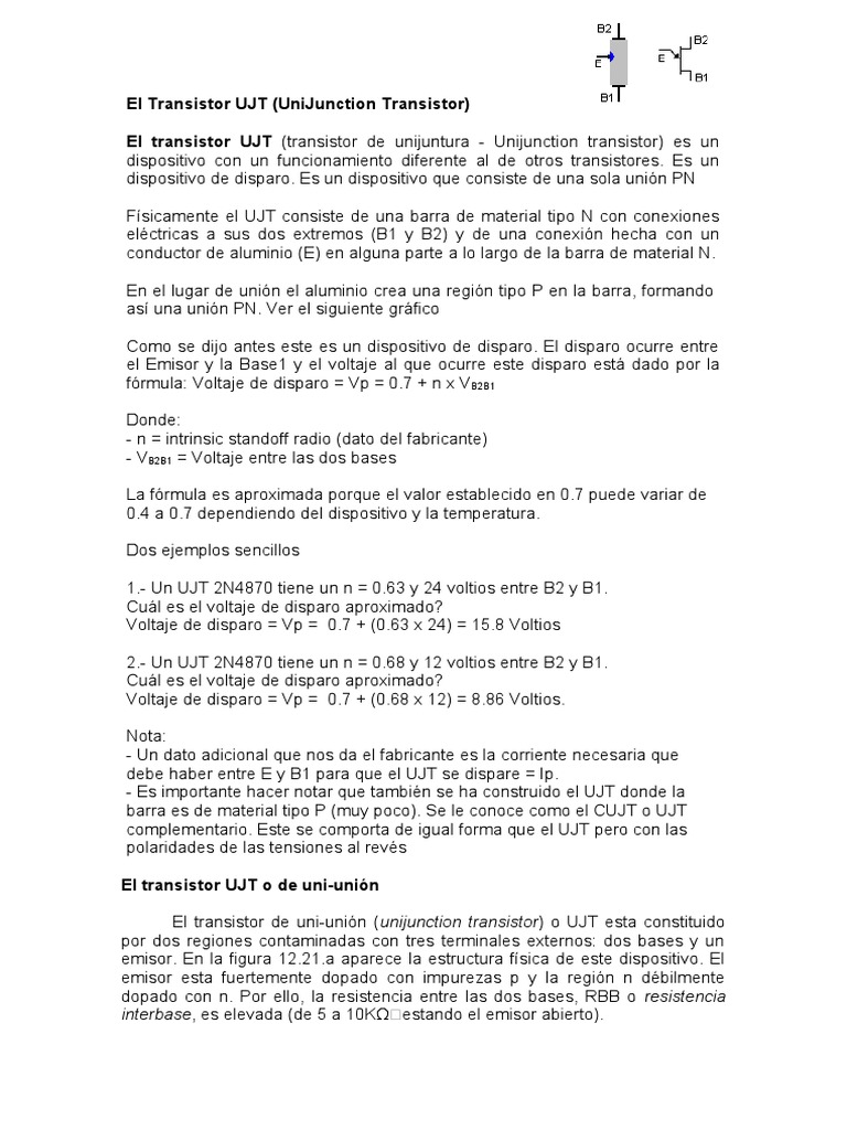 El transistor UJT (transistor de unijuntura - Unijunction transistor) es un