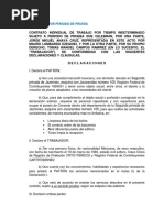 CONTRATO A PRUEBA, POR TIEMPO DETERMINADO, que celebra por una parte la empresa denominada