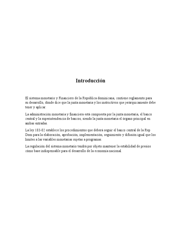 El sistema monetario y Financiero de la Republica dominicana, contiene reglamento para