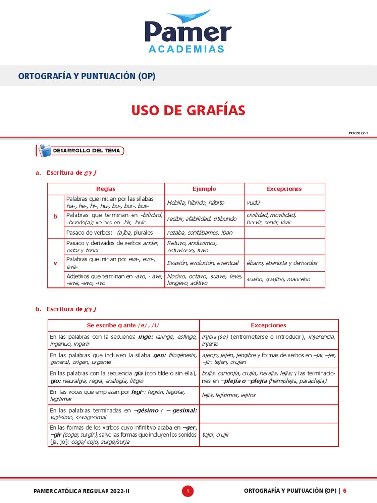ORTOGRAFÍA Y PUNTUACIÓN (OP) | 6 3 PAMER CATÓLICA REGULAR 2022-II