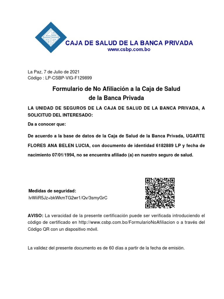 código de certificado en http://www.csbp.com.bo/FormularioNoAfiliacion o a través del