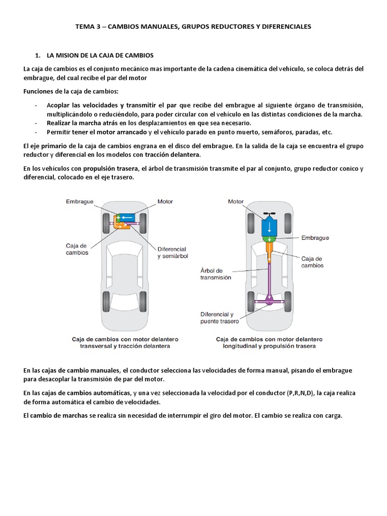 TEMA 3 – CAMBIOS MANUALES, GRUPOS REDUCTORES Y DIFERENCIALES