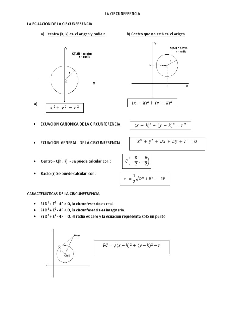 a) centro (h, k) en el origen y radio r b) Centro que no está en el origen
