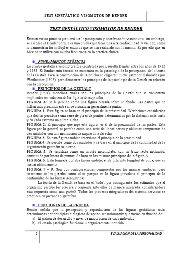 La prueba de Bender se utiliza para evaluar la función gestáltica visomotora tanto en niños