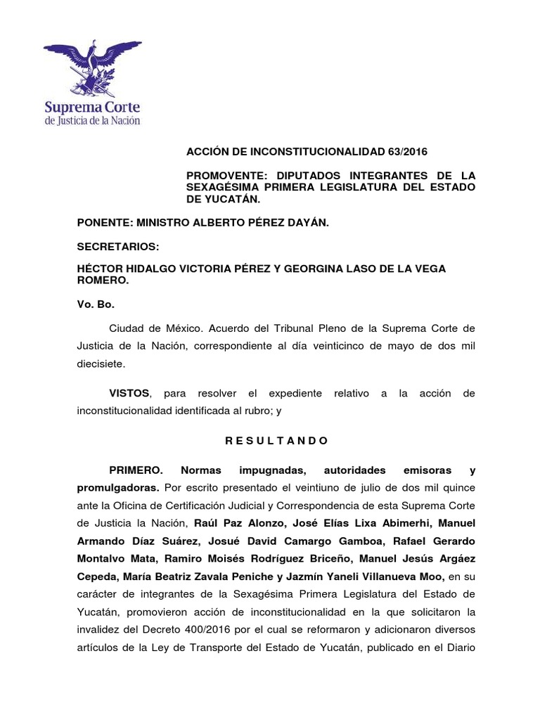 ACCIÓN DE INCONSTITUCIONALIDAD 63/2016