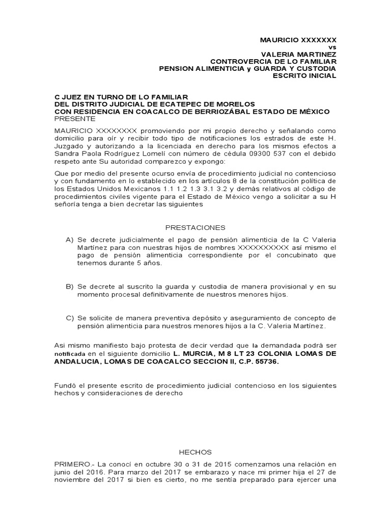 pensión alimenticia para nuestros menores hijos a la C. Valeria Martínez.