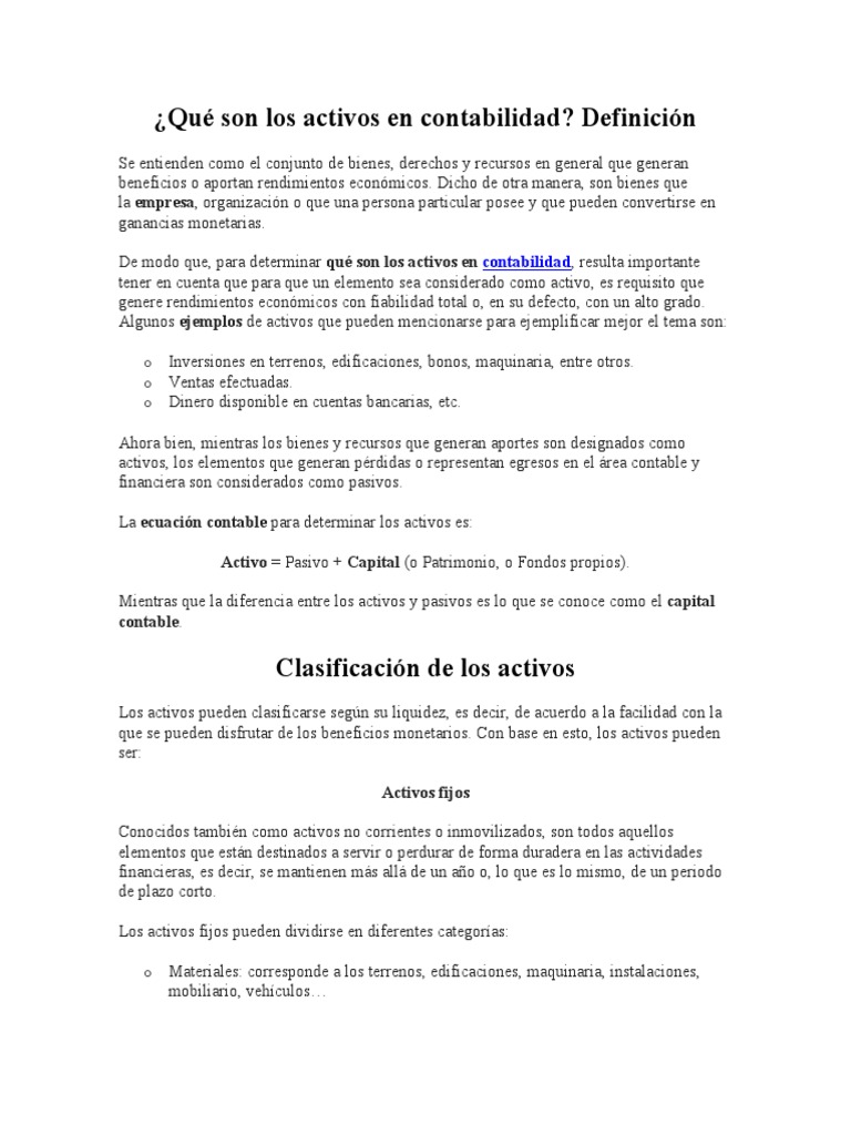 De modo que, para determinar qué son los activos en contabilidad, resulta importante
