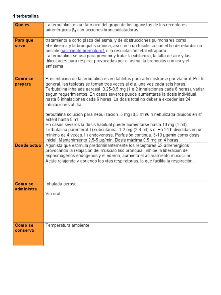 Como se Presentación de la terbutalina es en tabletas para administrarse por vía oral. Por lo